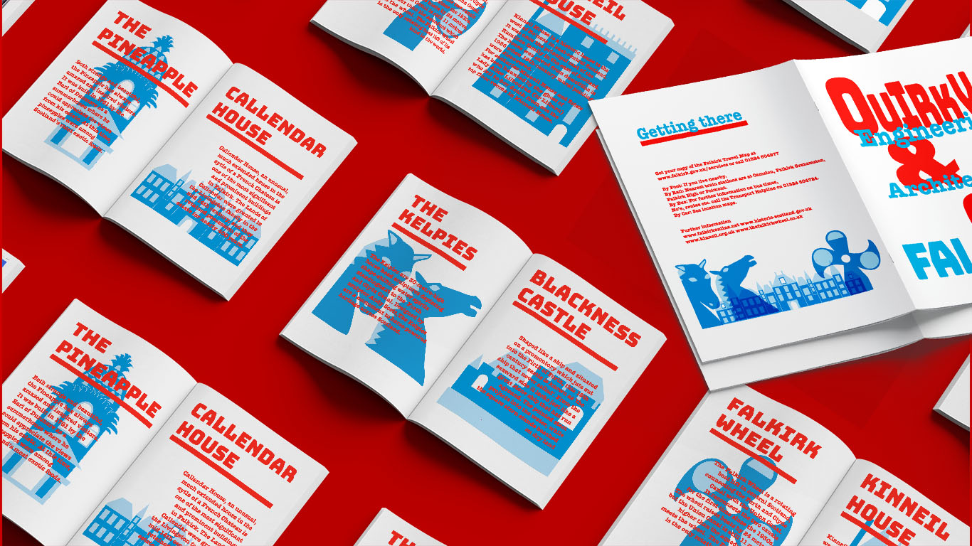 The travel souvenirs have been designed to show the technique of overprinting and are designed as a square printed brochure, an A5 Risograph printed brochure, special keepsake map and a Letterpress postcard.